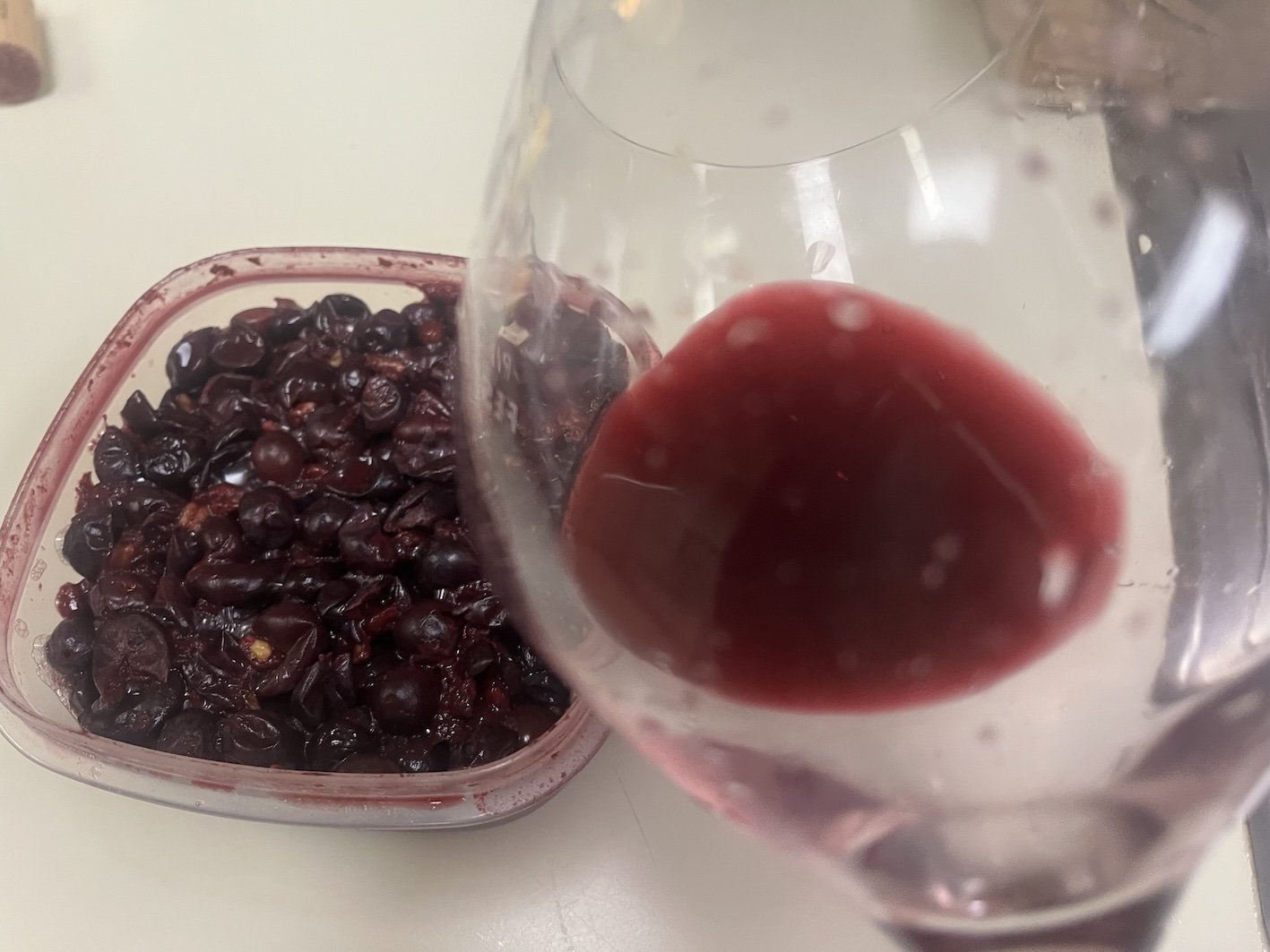 Tupperware fermented Pinot Noir from Deer Ridge Trail, day 4.